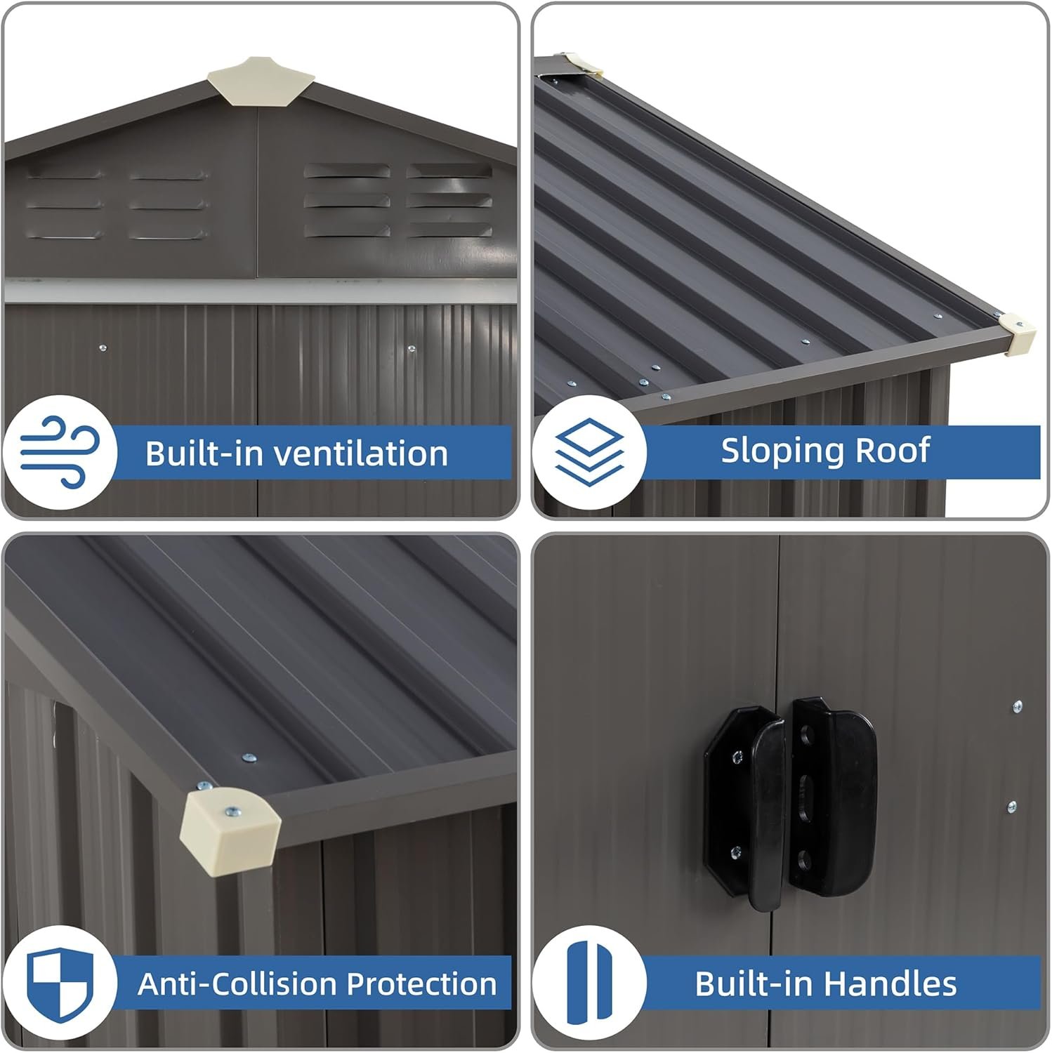 Constructed with weather-resistant alloy steel, this sheds unit is durable and built to withstand outdoor elements. Its powder-coated finish ensures long-lasting protection against rust and corrosion.